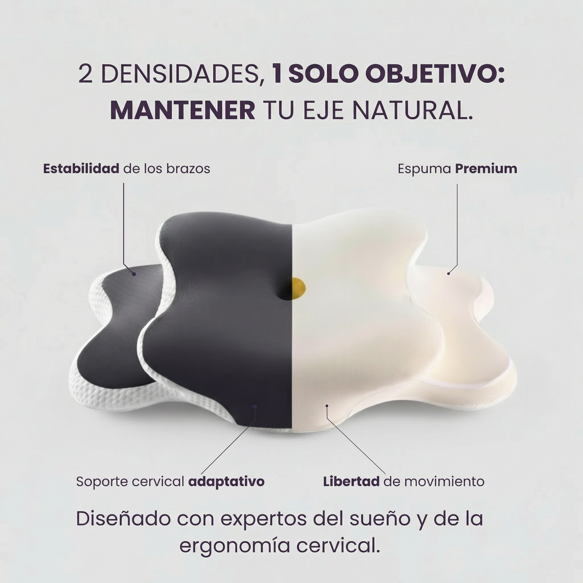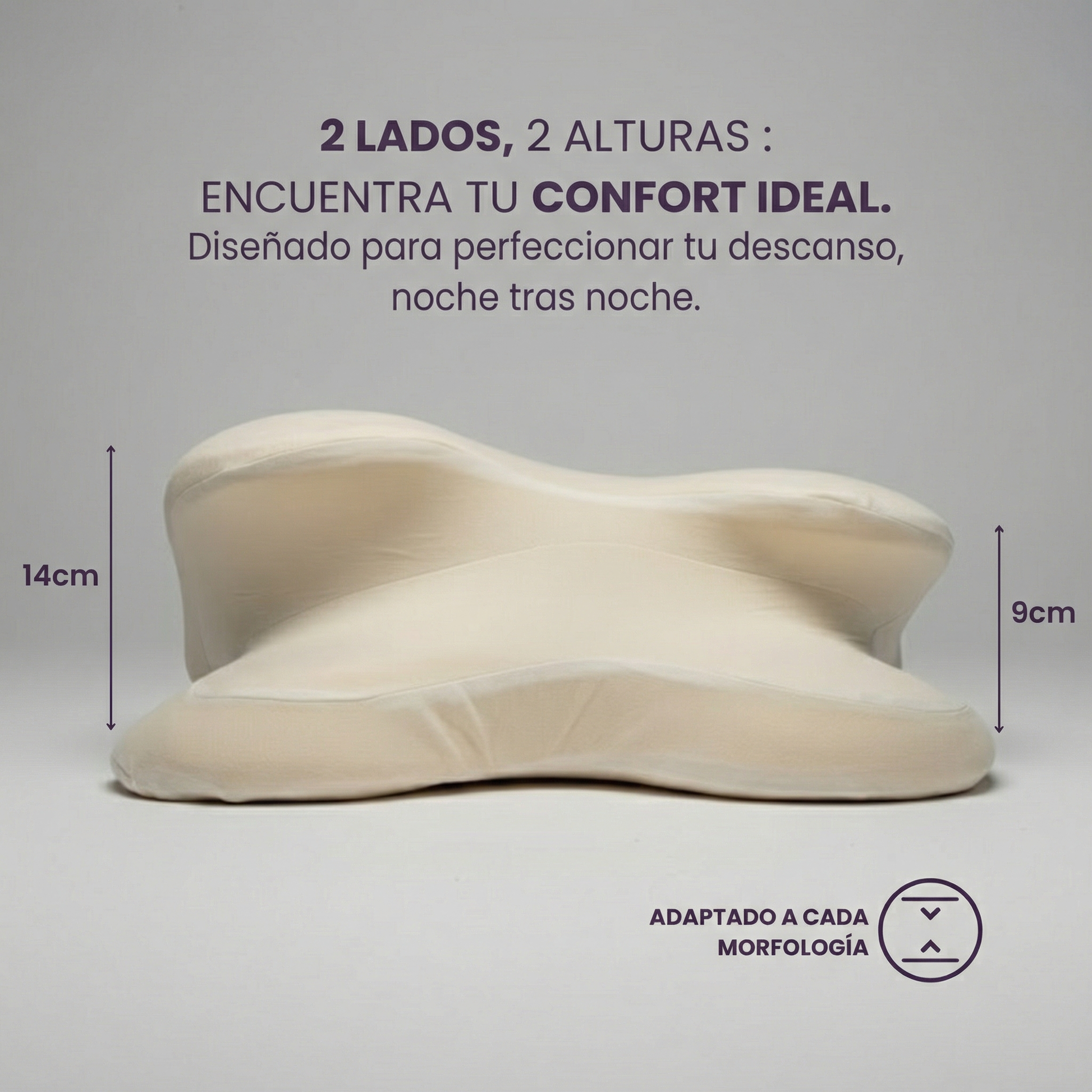 Su diseño anatómico ayuda a mantener una alineación cervical más natural durante la noche, favoreciendo un descanso más equilibrado y confortable.